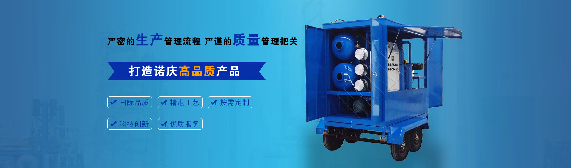 重慶諾慶機電有限公司是一家專業(yè)的濾油機設備生產(chǎn)企業(yè),公司是集真空濾油機研發(fā),生產(chǎn)和銷售為一體的股份制企業(yè),公司擁有1800平米生產(chǎn)車間,注冊資金1000萬元。經(jīng)過十年的不斷發(fā)展,公司已經(jīng)成長為一個集濾油機,真空濾油機制造,服務,貿(mào)易為一體的綜合企業(yè)。重慶諾慶產(chǎn)品廣泛的應用在電力,石化,礦山,造船,鋼結構,橋梁,汽車,鐵路等不同行業(yè)。同時···